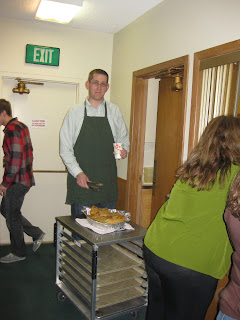 On December 1, the relief society held a breakfast for the sisters. The event also included a few small crafts themed around Christmas. Many different sisters brought food. The meal turned out delicious with cinnamon rolls, bagels, quiche, and fresh fruit. Sister Staples taught a short workshop on making gift tags (Photo above). Sister Walker had many examples of adorable homemade greeting cards, and Sister McDonough supplied an ornament craft. The breakfast was fun and offered lots of time to talk and cement relationships with the sisters.
